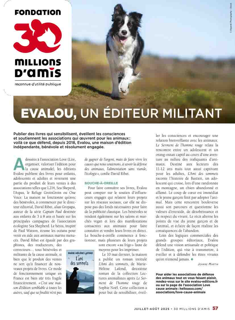 Notre démarche éditoriale, entièrement bénévole et tournée vers la solidarité, inspire de plus en plus de journalistes sensibles à la cause animale. Nous continuons à développer nos collections avec passion, en restant fidèles à notre devise : publier des livres qui éveillent les consciences et soutiennent la vie sous toutes ses formes.